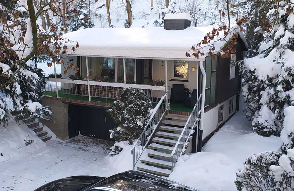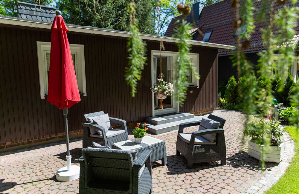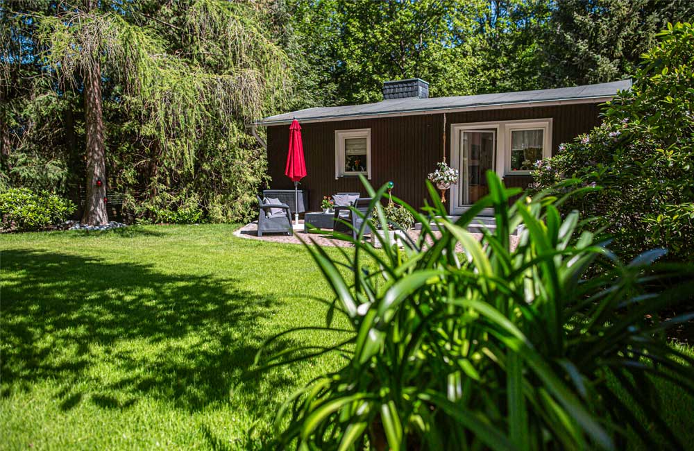 Das Ferienhaus steht auf einem separaten Gartengrundstück (800 qm), neben dem Haus des Vermieters, mit eigener Zufahrt, Parkplatz auf dem Grundstück, wenn gewünscht, auch Garage unter dem Ferienhaus.