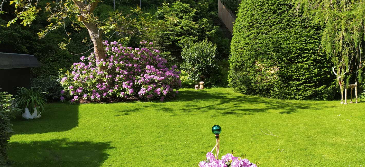 Zum Haus gehört ein gepflegter Garten / Liegewiese, Terrasse (30 m²), Garten-und Liegemöbel sowie ein Grill.